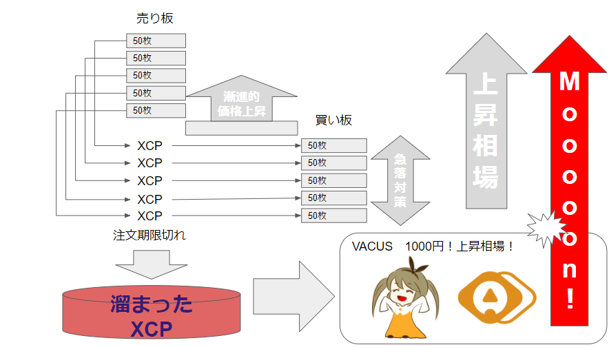 大量のXCPでVACUSを市場で買い上げ、