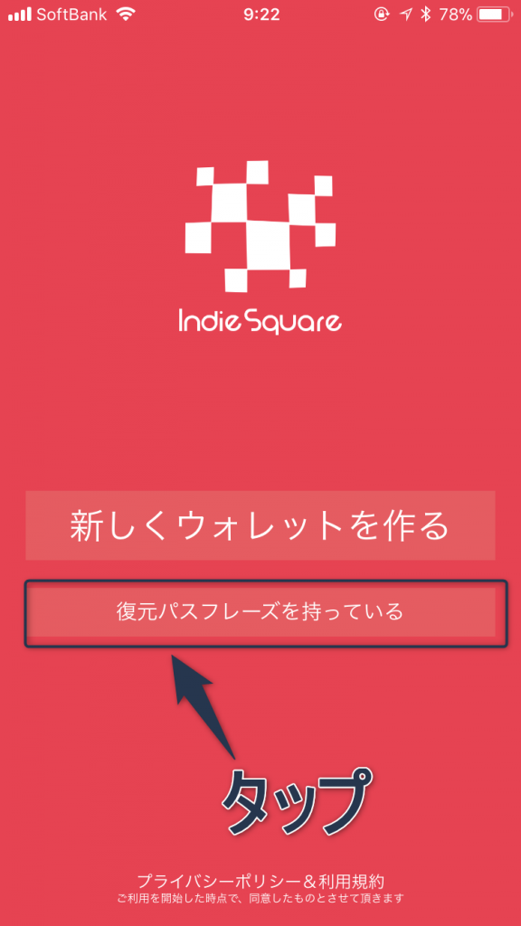 IndieSquareをダウンロードし、アプリを立ち上げます