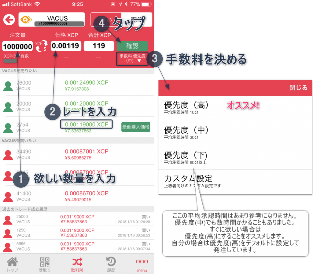 VACUSを買いたくてCounterwalletにXCPもBTCも苦労してやっと準備出来た。