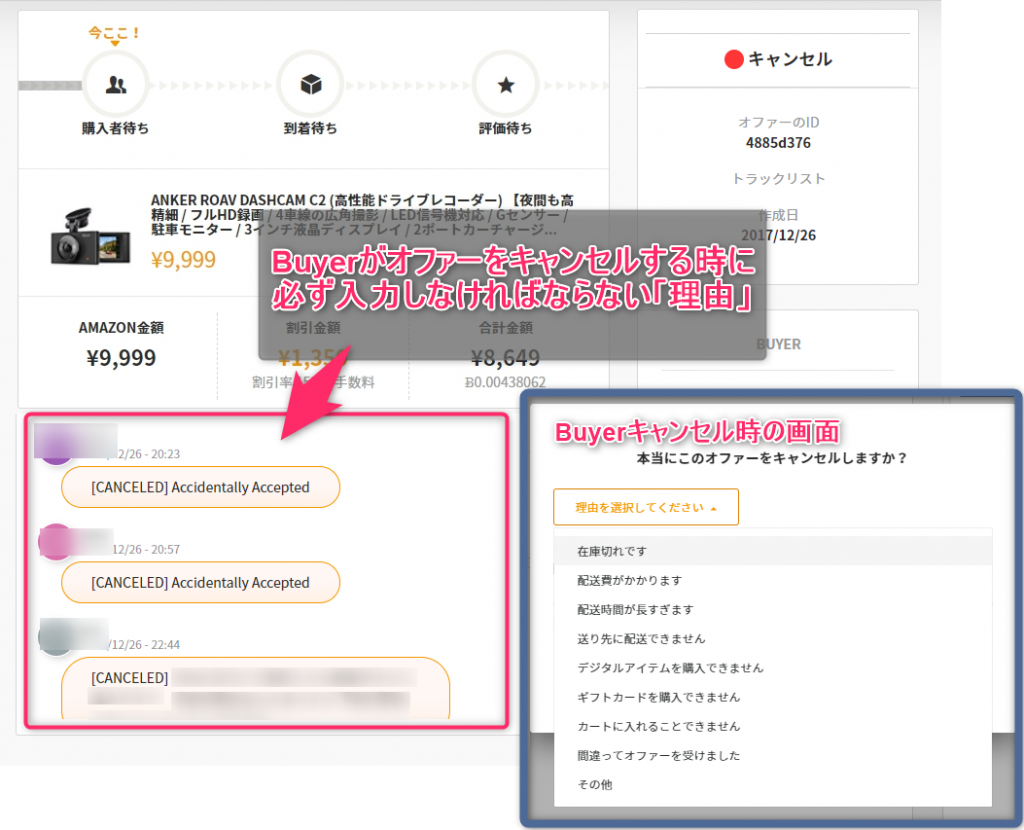 Buyerがオファーを受けてくれるけれど、何故かキャンセルされてしまう。しかもそれが何度も続く場合は、何らかの理由でBuyerが購入を完了できなくなっていると思われます。