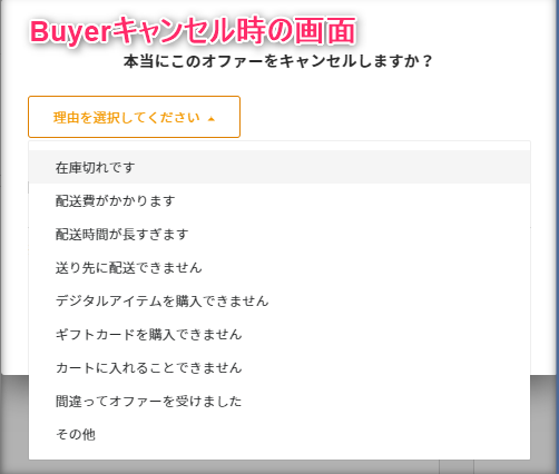 オファーをキャンセルするときに理由を選択することができるので、一番近い項目を選んでShopperさんにオファーを進められない理由を教えてあげましょう。