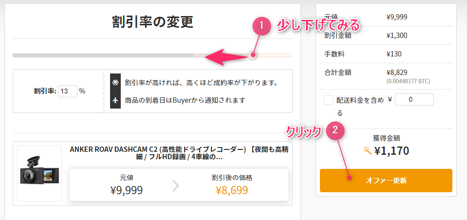 割引率を少し下げてBuyerが現れるのか様子をみましょう。