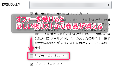 ほしい物リストは、設定でサプライズにするのチェックを外した場合、Buyerがオファーを受けると商品が消えます。