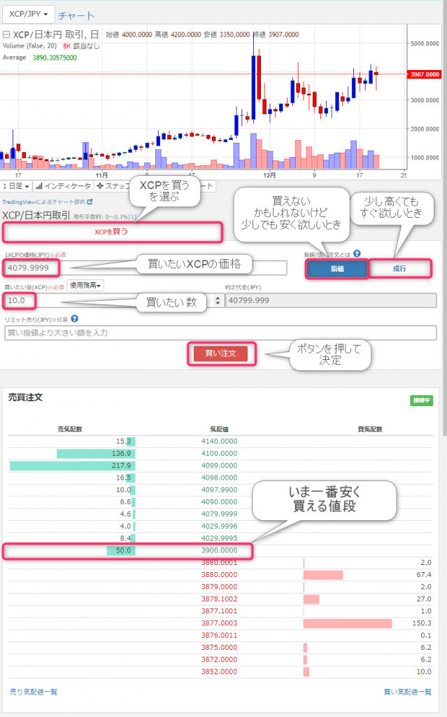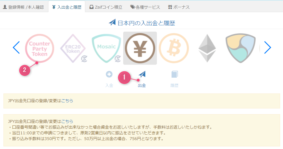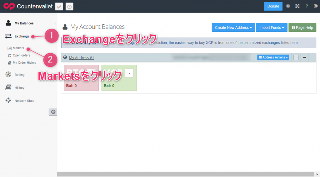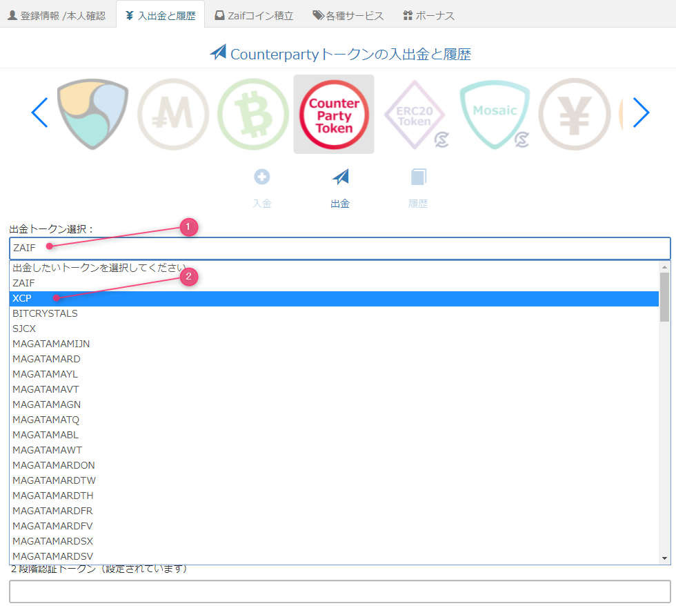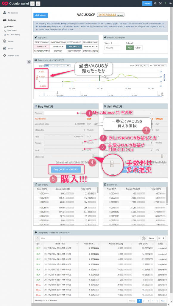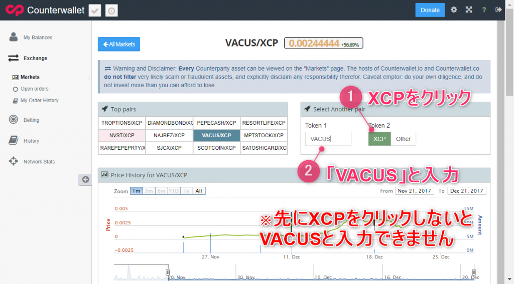 ②CounterwalletのExchangeにて「VACUS」を選択して購入する。