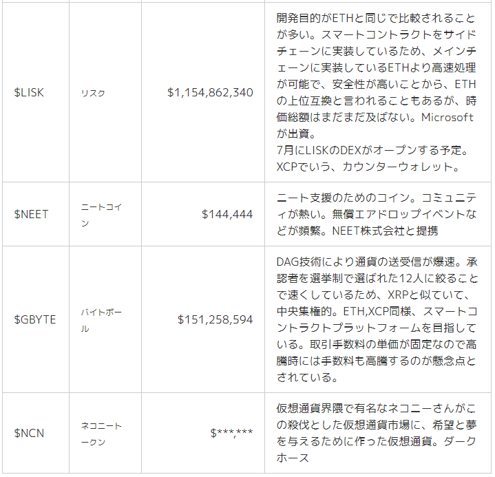 時価総額はCoinMarketCap.comより引用(全て2018年5月22日現在)