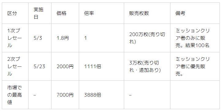 1次プレセールで3万円分買った人は、なんということでしょう。20日で資産1億円を越えてしまったではありませんか!