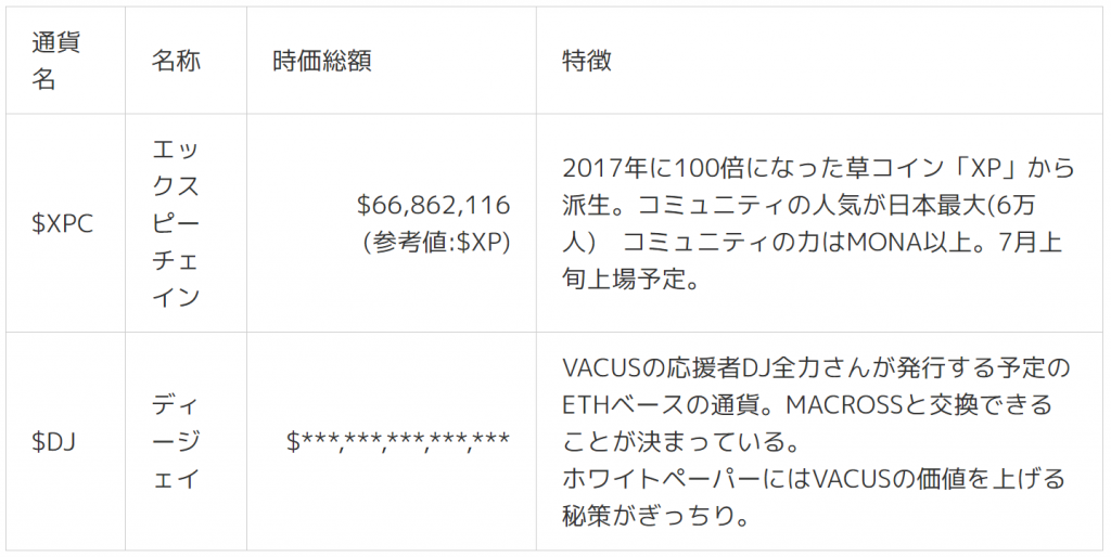 なお、DJ開発終了後も、VACUSといつでも交換可能であるというMACROSSの価値はそのまま維持されます。DJ全力の企画するイベントや、サービスの支払いに使えることも同様です。ですからホルダーは、所有するMACROSSをそのまま保持してもかまいませんし、その一部をDJに変えて、転売で利益を上げてもいい訳です。
